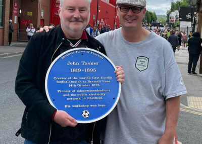 A blue plaque has just been unveiled in Sheffield city centre to honour an engineer who created the world’s first football match played under floodlights.
