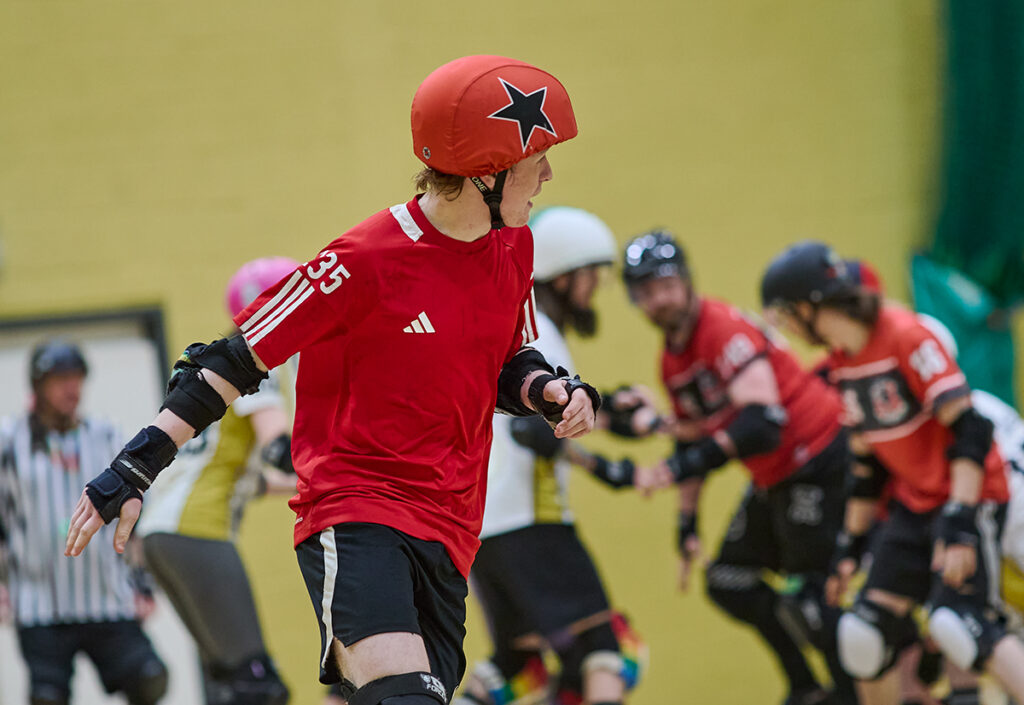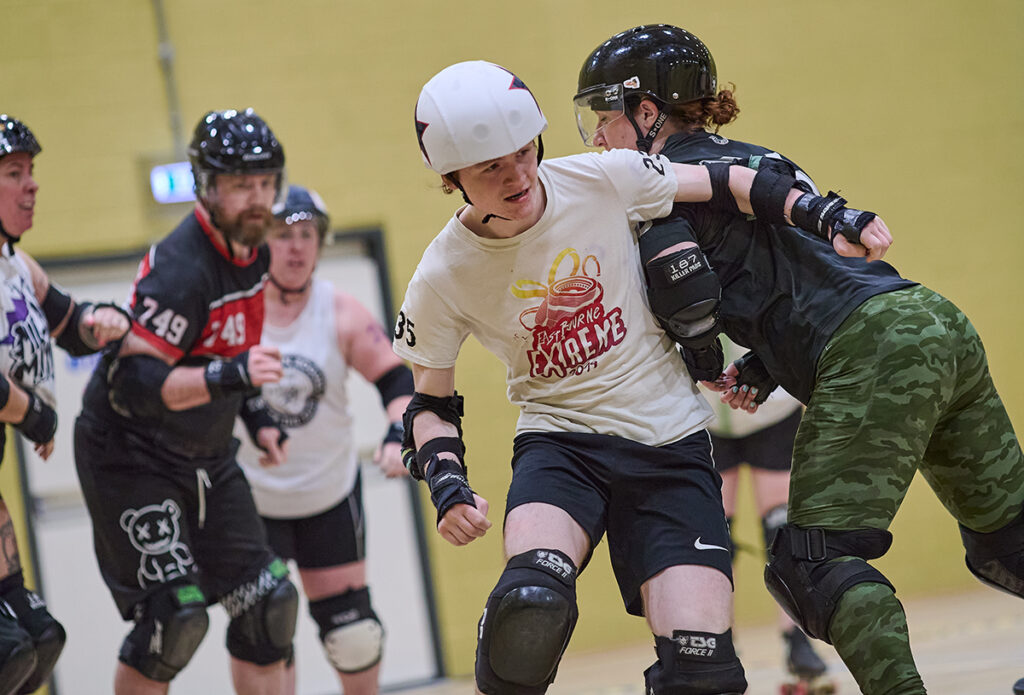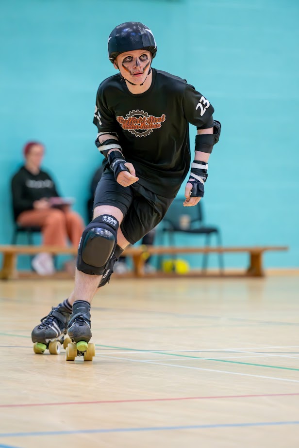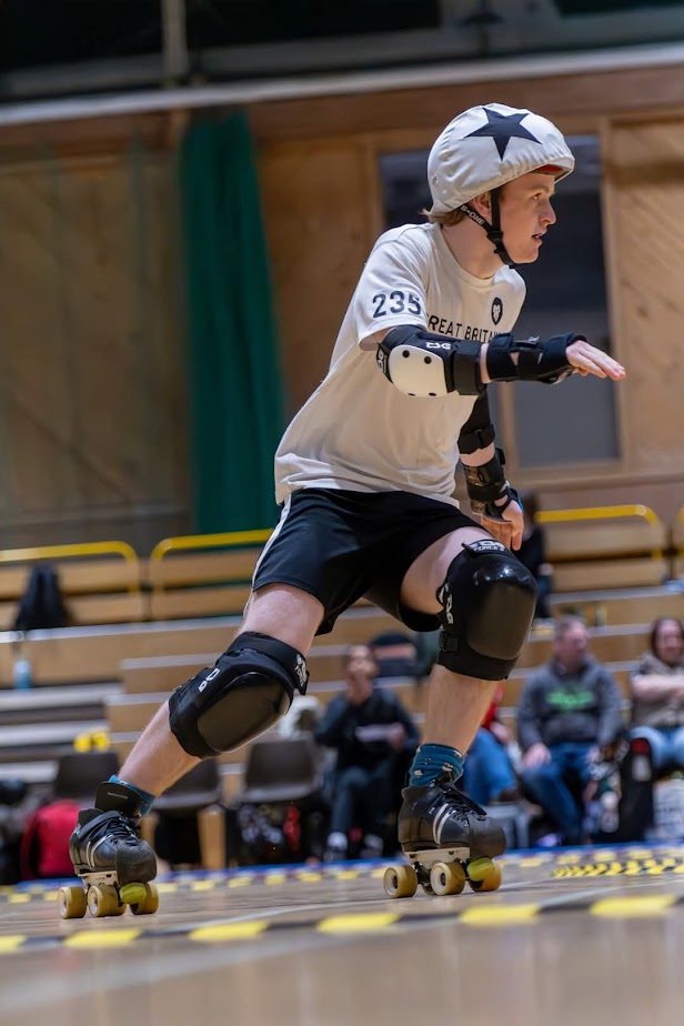 Tom regularly trains with two Sheffield adult roller derby teams, Sheffield Steel Roller Derby and The Inhuman League. He also attends team GB training sessions once a month and plays with teams across the country.