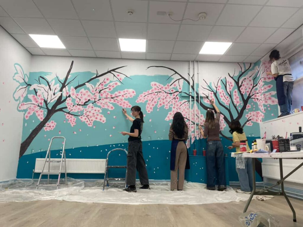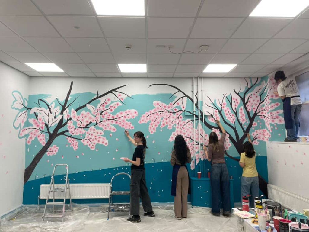 The Arts Society originally met the Snowdrop Project at the Freshers Fair and reached out to them to work on a mural.